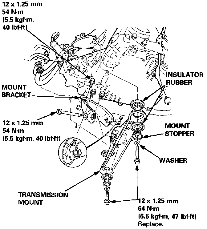3. Remove the transmission mount and mount bracket.