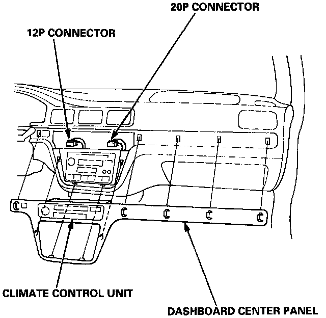 2. Disconnect the 12P and 2OP connectors from the climate control unit.
