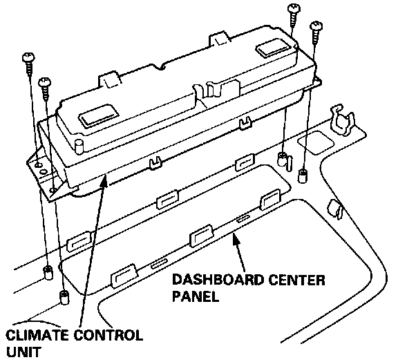 3. Remove the four self taping screws from the climate control unit, then remove the climate control unit from the dashboard center panel.