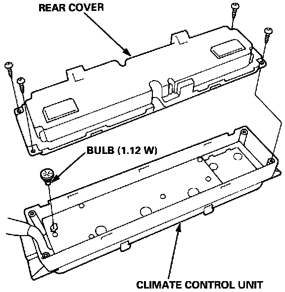 ^ Before replacing bulbs, discharge the static electricity, which accumulated on you when you removed the climate control unit, by touching the door striker or other parts of the car body.