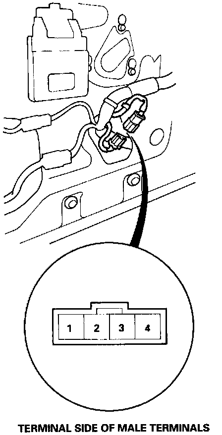 5. Connect the test leads of an analog ohmmeter to the No. 3 and No. 4 terminals.