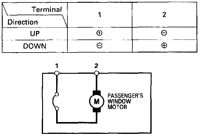 3. Check window motor operation by connecting power and ground according to the table.