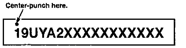 8. Center-punch a completion mark above the first character of the engine compartment VIN.