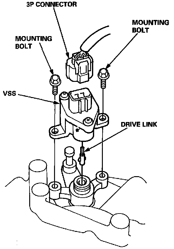 1. Disconnect the 3P connector from the vehicle speed sensor (VSS).Vehicle Speed Sensor (VSS)-Replacement: