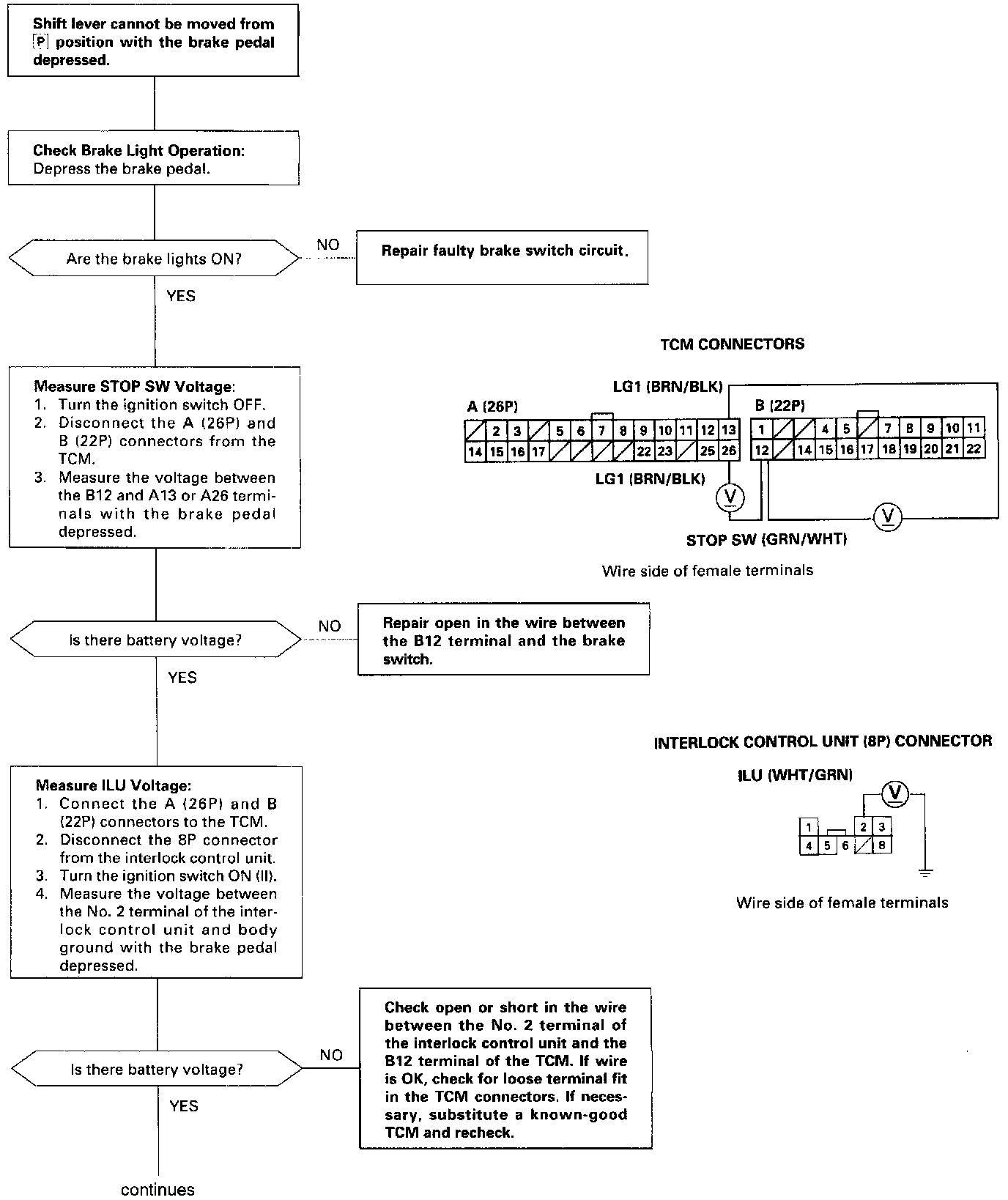 Interlock System - Shift Lock System Circuit Troubleshooting
