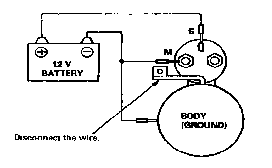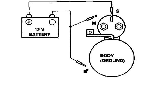 NOTE: Before starting the following checks, disconnect the wire from terminal M. and make a connection as described below using as heavy a wire as possible (preferably equivalent to the wire used for the vehicle).Pull-in Coil Test: