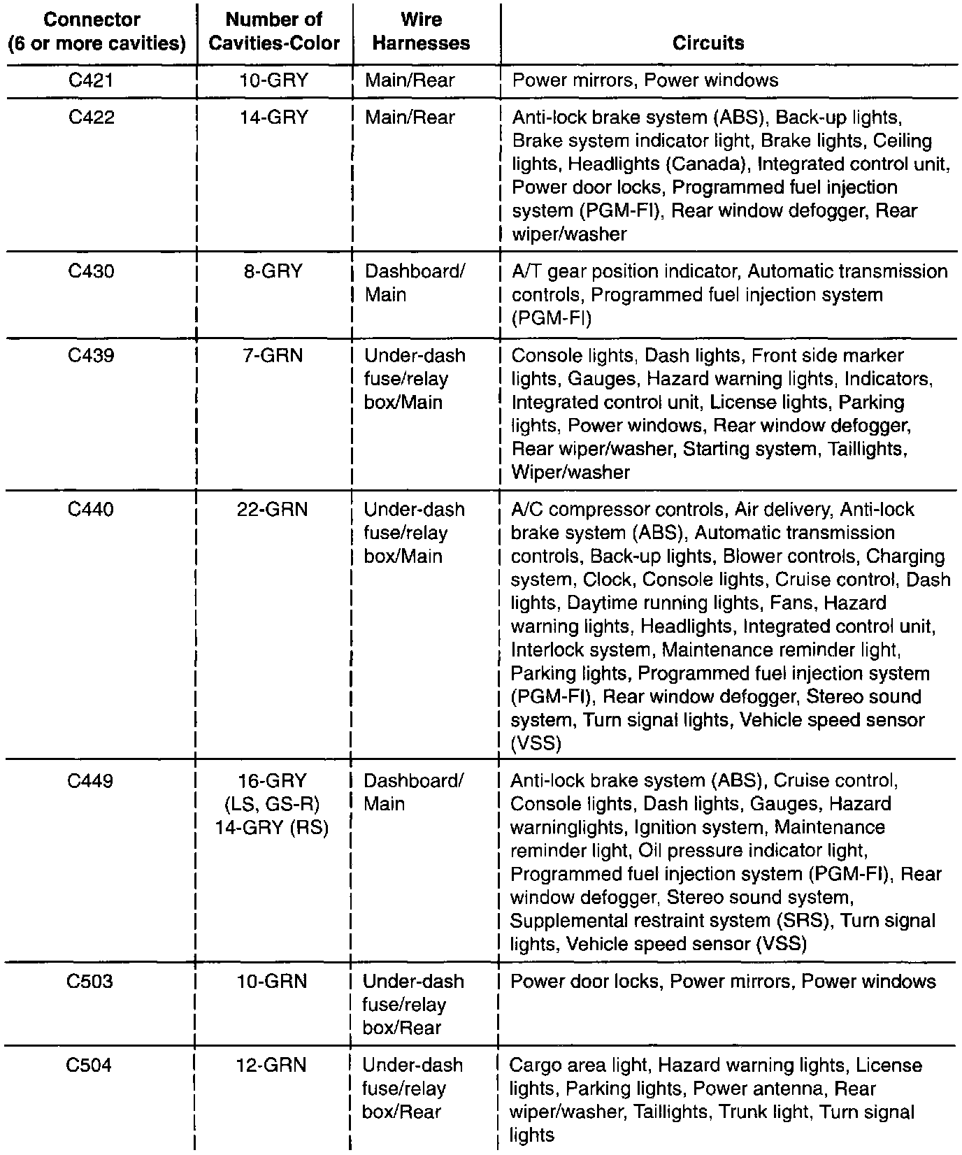 Circuit Identification For In-Line And Fuse Box Connectors (Part 3 Of 3):