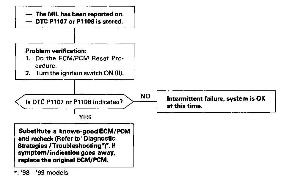 The scan tool indicates Diagnostic Trouble Code (DTC) P1107