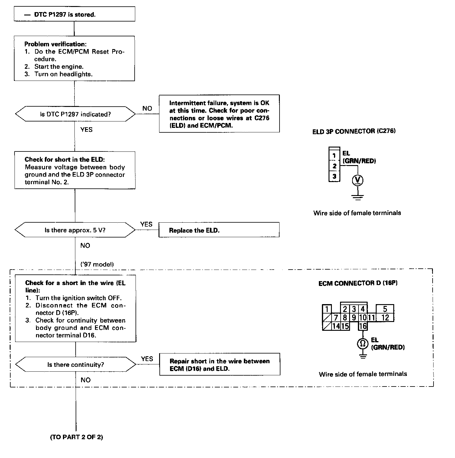 The scan tool indicates Diagnostic Trouble Code (DTC) P1297