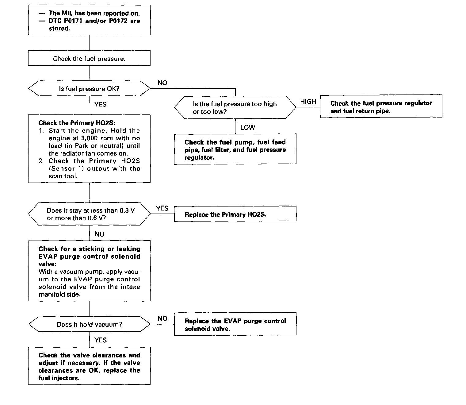 NOTE: If some of the DTCs listed below are stored at the same time as DTC P0171 and/or P0172, troubleshoot those DTCs first, then troubleshoot DTC P0171 and/or P0172.