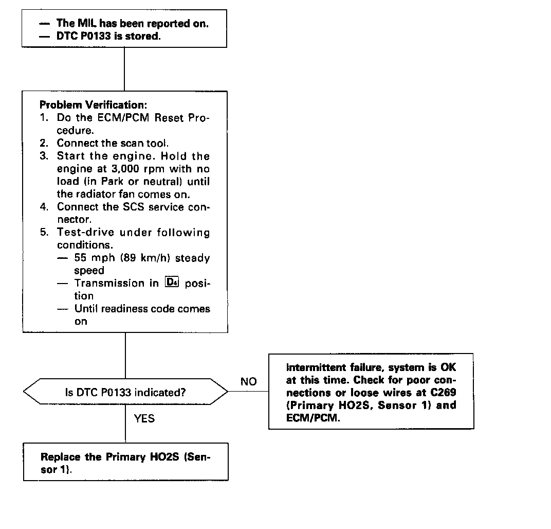 NOTE: If DTC P0131, P0132 and/or P0135 are stored at the same time as DTC P0133, troubleshoot those DTCs first, then troubleshoot DTC P0133.