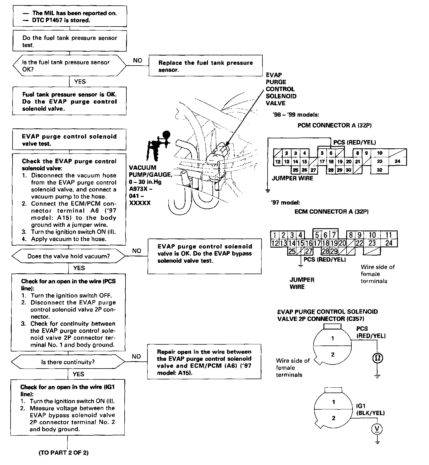 The scan tool indicates Diagnostic Trouble Code (DTC) P1457