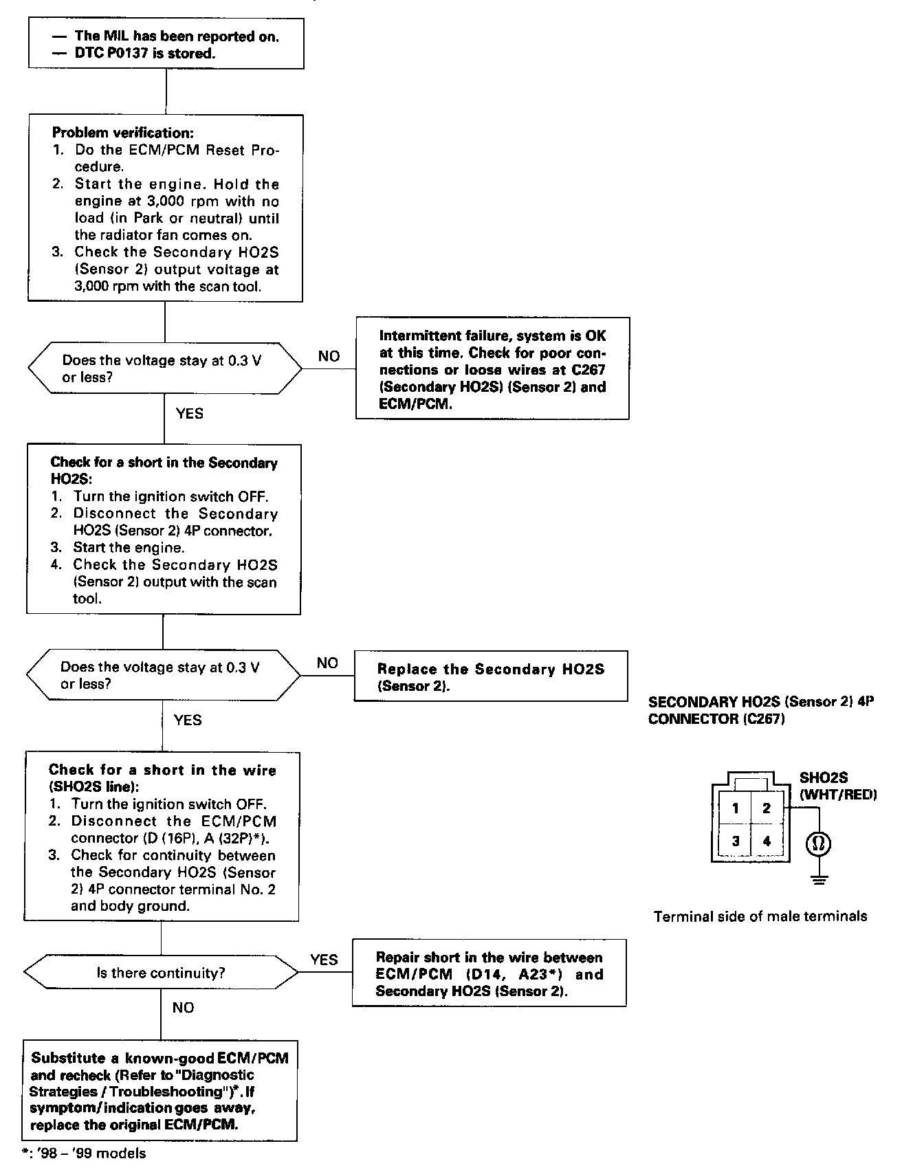 The scan tool indicates Diagnostic Trouble Code (DTC) P0137