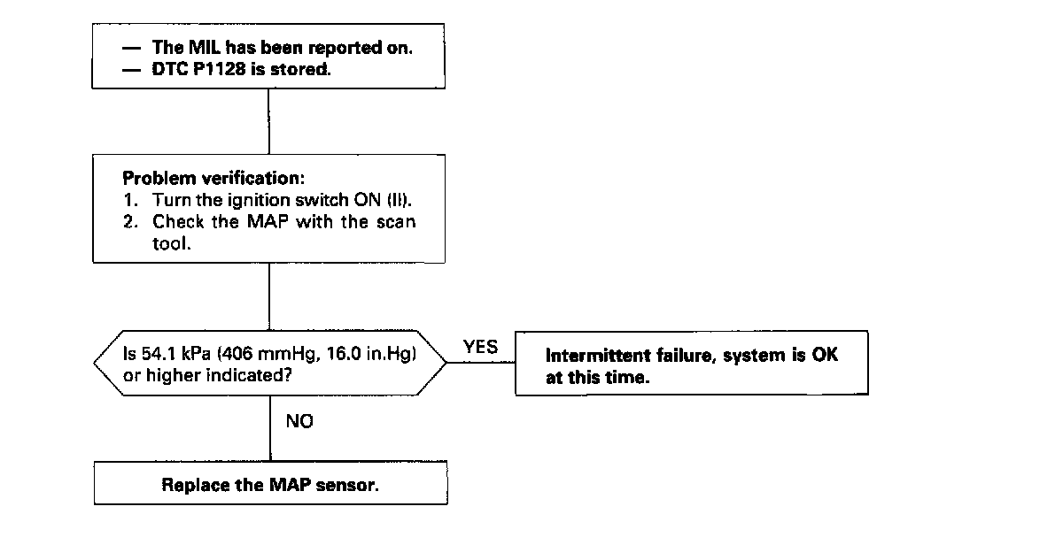 The scan tool indicates Diagnostic Trouble Code (DTC) P1128