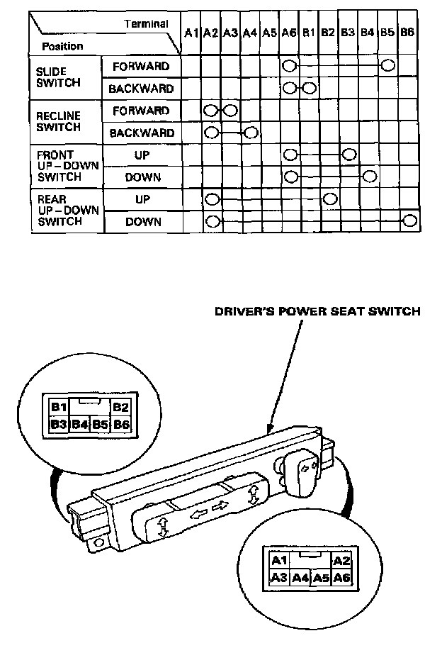3. Check for continuity between the terminals in each switch position according to the table.