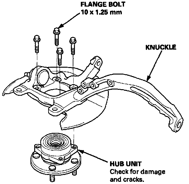 8. Install the knuckle on the hub unit, and tighten the flange bolts.