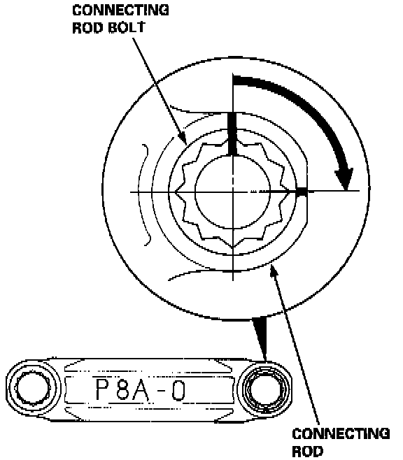 10. Tighten the bolt until the mark on the bolt head lines up with the mark on the connecting rod (Turn the bolt 90 degrees).