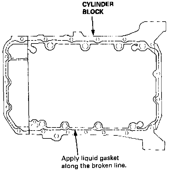16. Apply liquid gasket to the cylinder block, then install the oil pan.