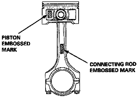 NOTE: Assemble the piston and connecting rod with the embossed marks on the same side.