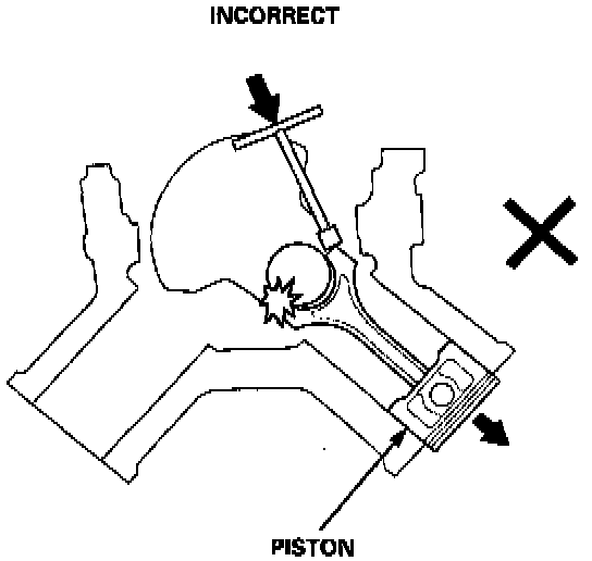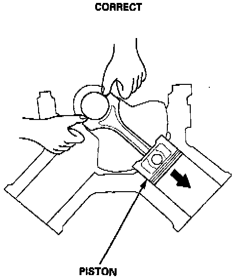 CAUTION: Take care not to damage the crank pin or cylinder with the connecting rod.