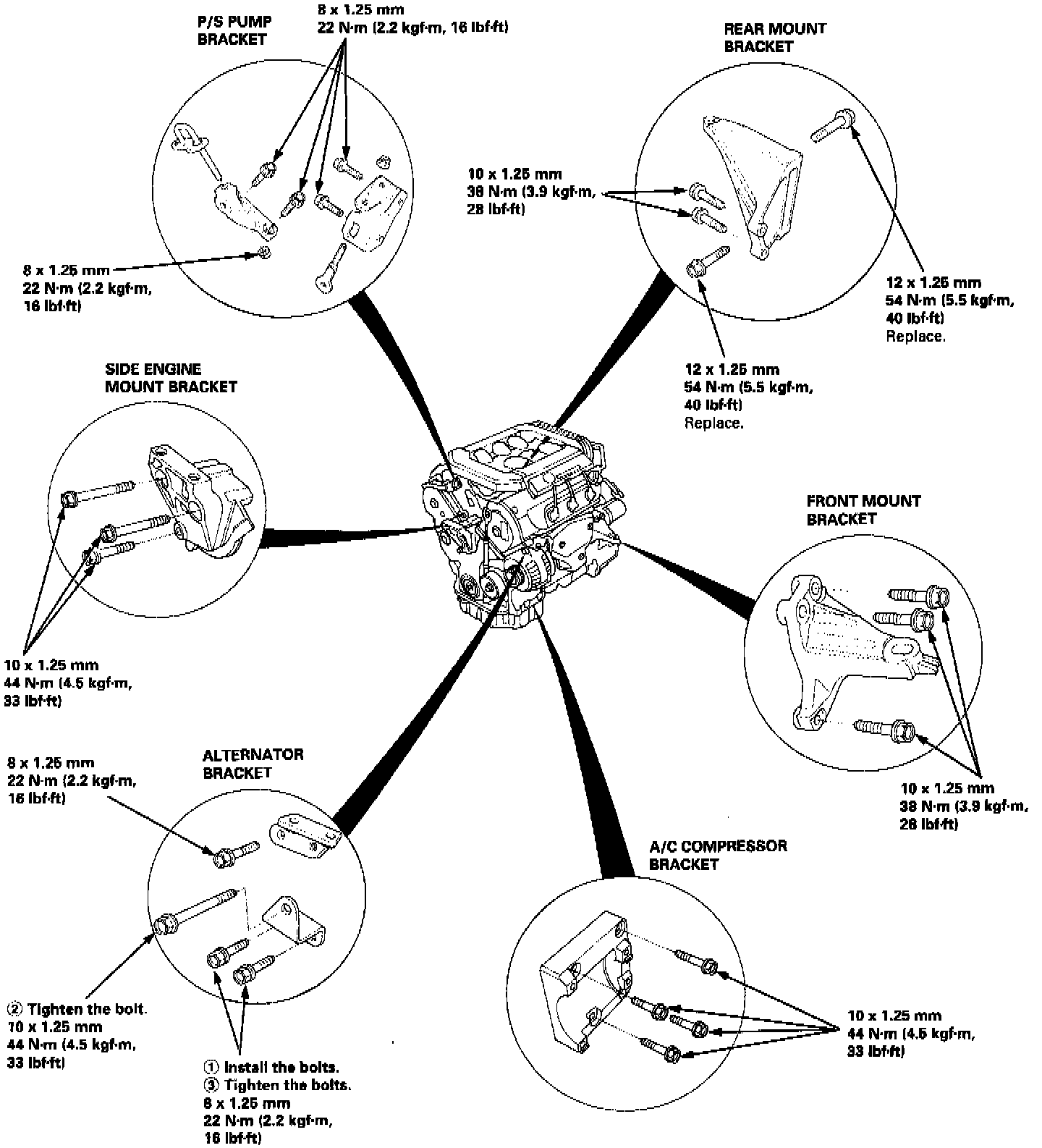 BRACKET BOLTS TORQUE SPECIFICATIONS:Engine Installation: