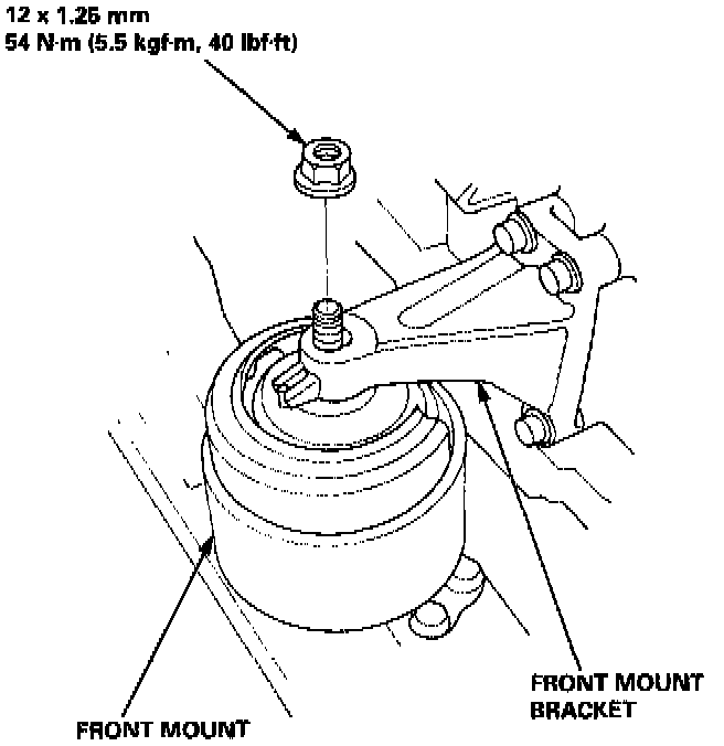 4. Install the transmission mount, then tighten the nuts on the transmission side.