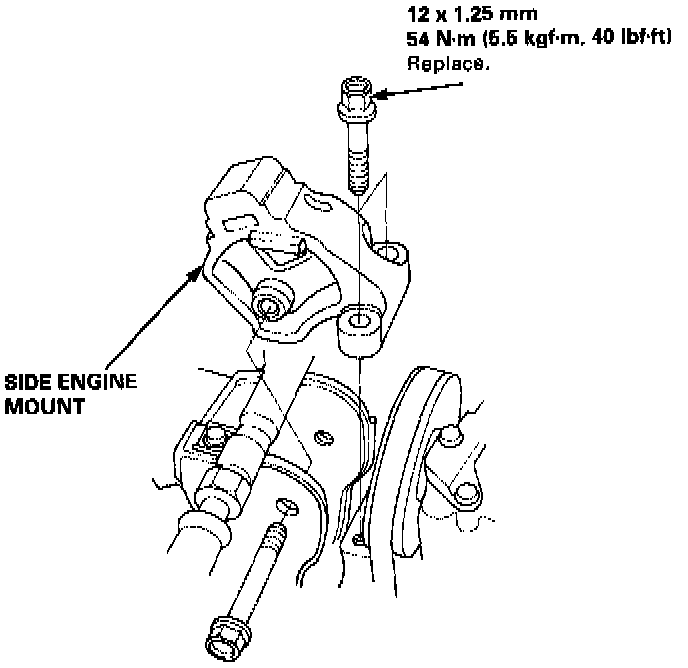 3. Install the side engine mount, then tighten the bolts on the engine side.