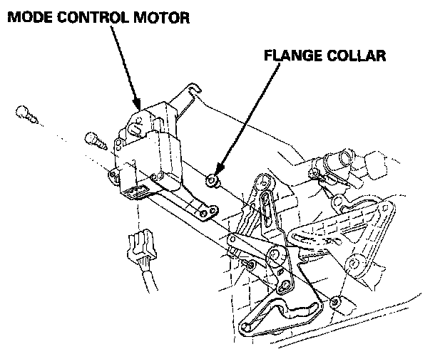 1. Disconnect the connector from the mode control motor, then loosen the self-tapping screw, and remove the self-tapping screws, the mode control motor and the flange collar.