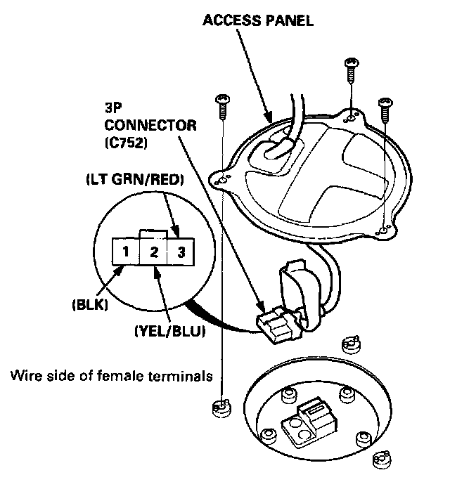 3. Disconnect the 3P connector (C752) from the fuel gauge sending unit.