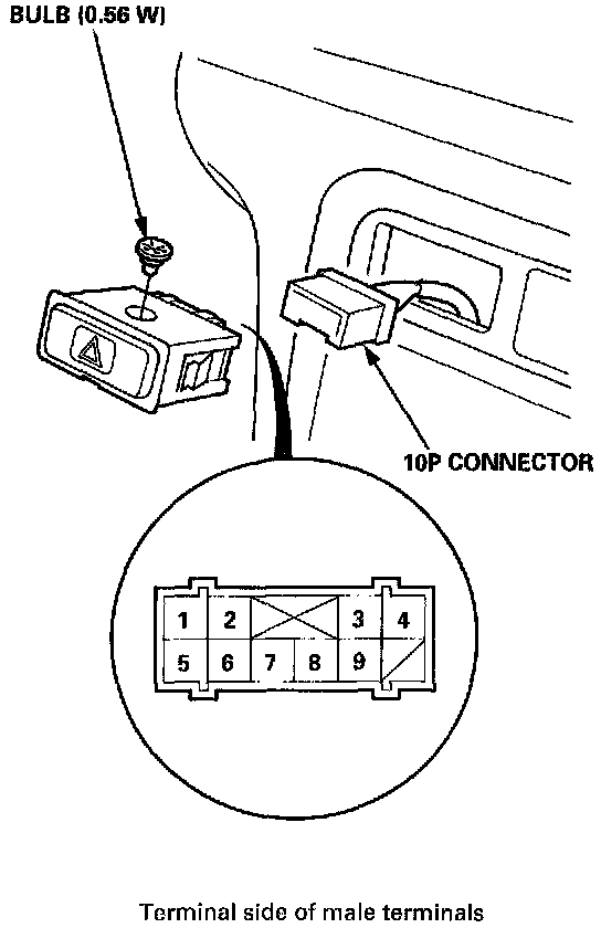2. Disconnect the 10P connector from the hazard warning switch.