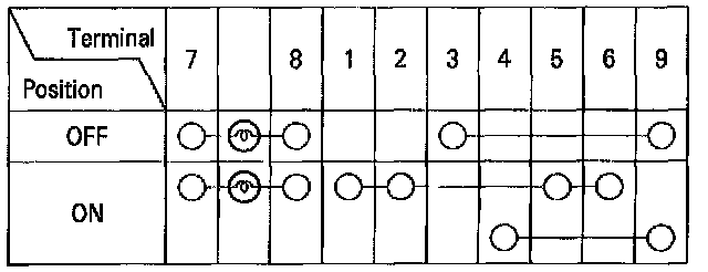 3. Check for continued between the terminals in each switch position according to the table.