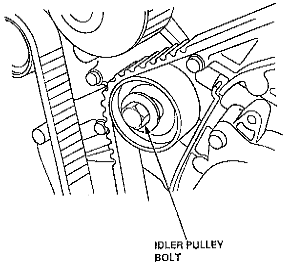 10. Loosen the idler pulley bolt about five or six turns, then remove the timing belt.