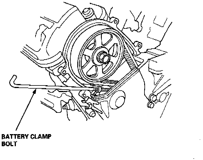 9. To hold the timing belt adjuster in its current position, thread in the battery clamp bolt hand-tight.