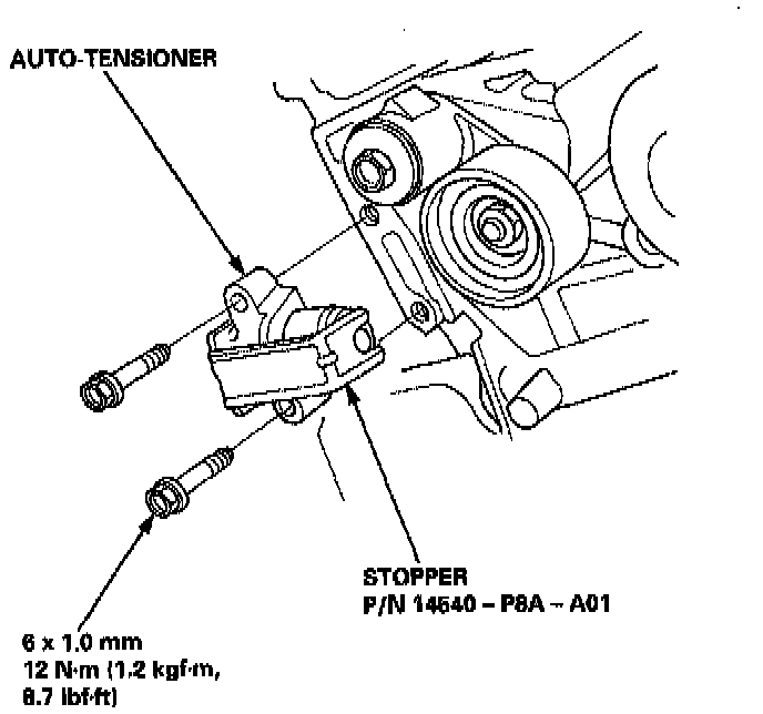 - If the auto-tensioner has extended and the timing belt cannot be installed, remove and compress the auto-tensioner.