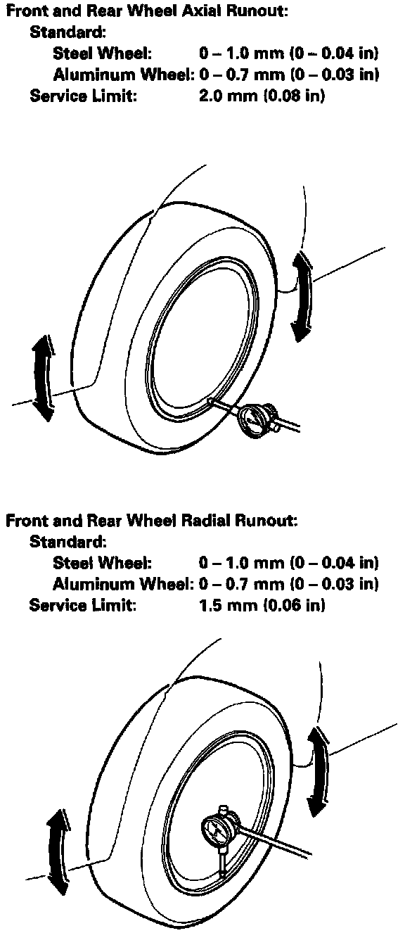 5. If the wheel runout is more than the service limit, replace the wheel.