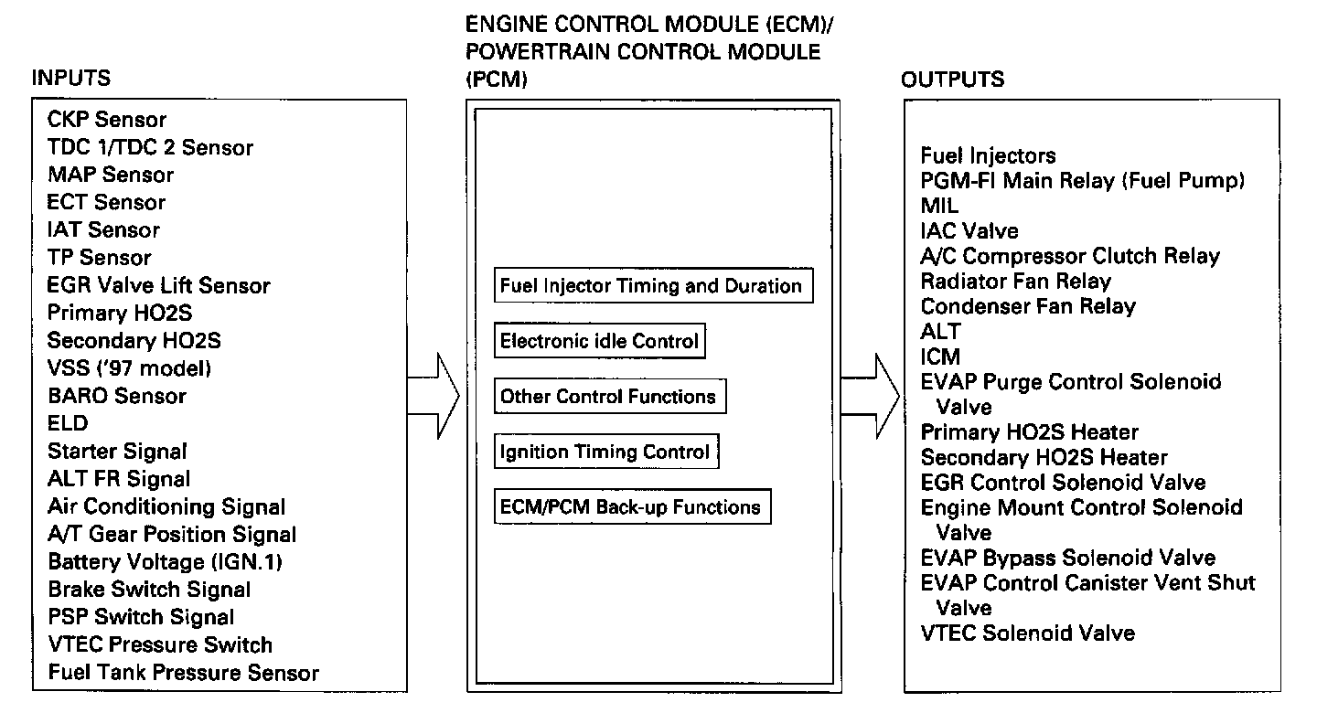 When an abnormality occurs in the ECM/PCM itself, the fuel injectors are controlled by a back-up circuit independent of the system in order to permit minimal driving.