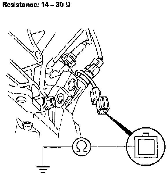 3. If the resistance is within specifications, remove the VTEC solenoid valve/oil filter assembly from the oil pump, and check the VTEC solenoid valve filter for clogging.