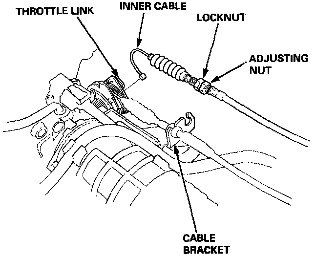 Installation1. Open the throttle valve fully, then install the throttle cable in the throttle linkage, and install the cable housing in the cable bracket.