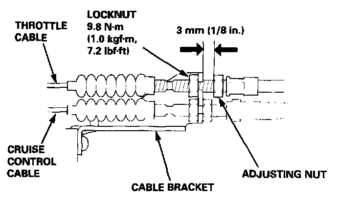 6. Turn the adjusting nut until it is 3 mm (1/8 in.) away from the cable bracket.