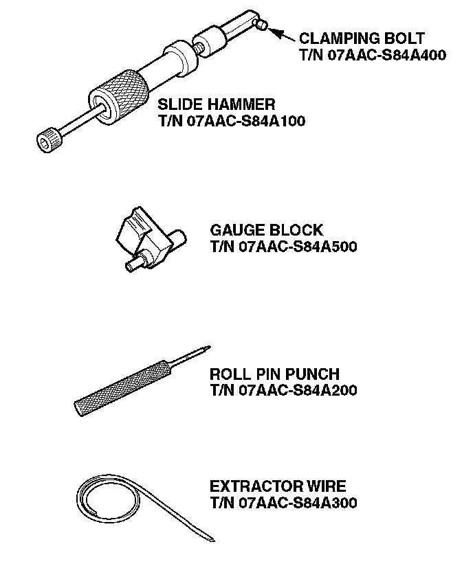 Interlock Tool Kit: T/N 07AAC-S84A130 (Includes slide hammer, gauge block, two roll pin punches, and eight extractor wires)