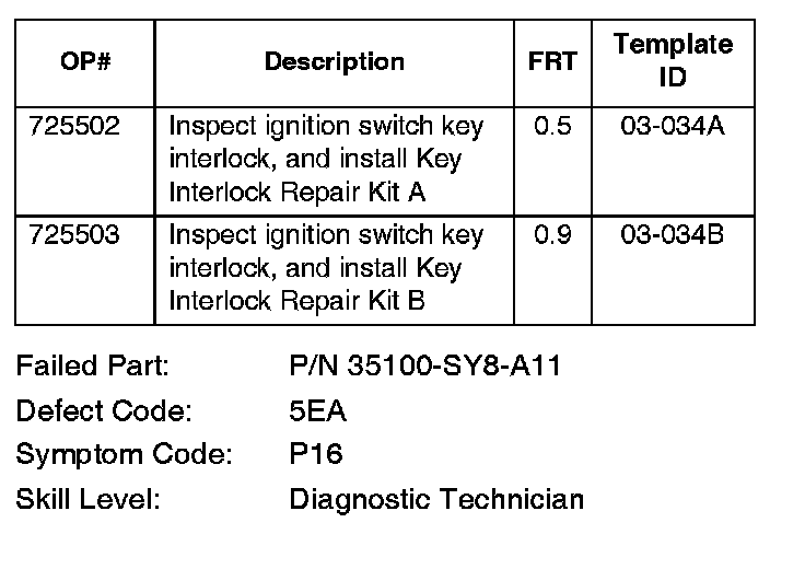 Recall - Ignition Switch Key Interlock Repair: Overview