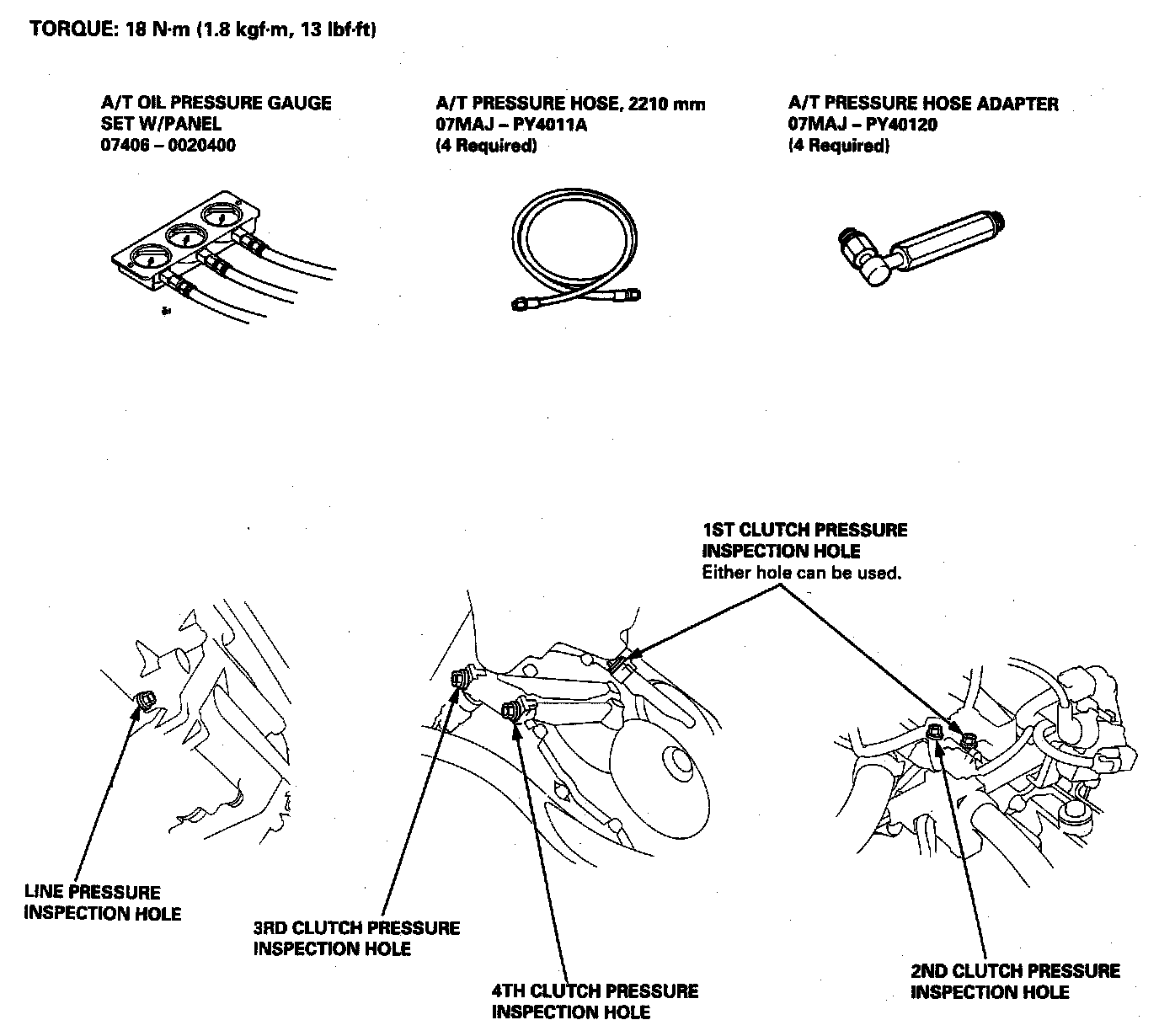 TORQUE: 18 Nm (1.8 kgf.m, 13 ft. lbs.)