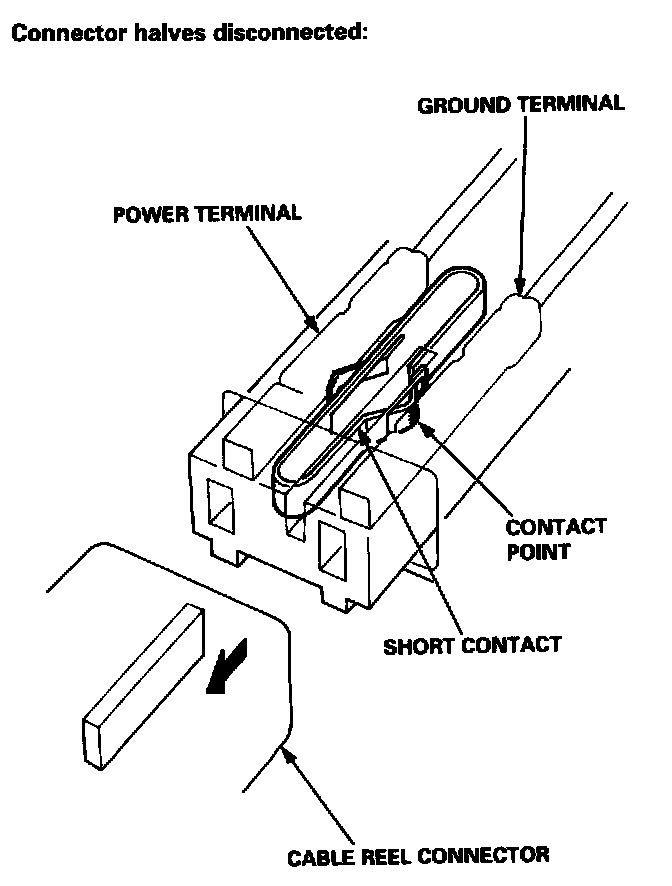 The driver's airbag and front passenger's airbag have a spring-loaded lock connector with a built-in short contact. When this connector is disconnected, the power terminal and the ground terminal in the airbag connector are automatically shorted.