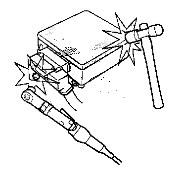 During installation or replacement, be careful not to bump (by impact wrench, hammer, etc.) the area around the SRS unit. The airbags could accidentally deploy and cause damage or injury.