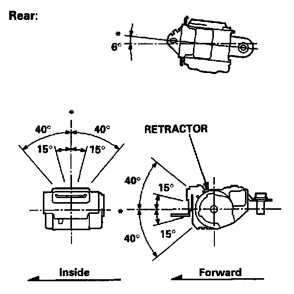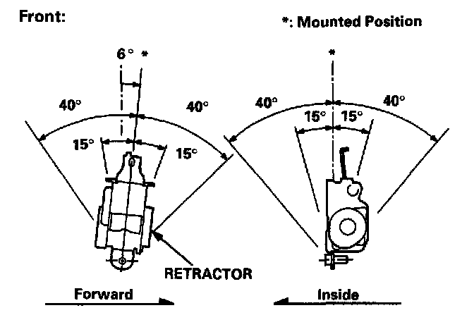 2. Make sure that the seat belt does not lock when the retractor is leaned slowly up to 150 from the mounted position. The seat belt should lock when the retractor is leaned over 400.