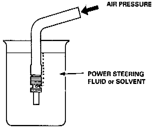 5. Submerge the valve in a container of power steering fluid or solvent, and blow in the hose. If air bubbles leak through the valve at less than 100 kPa (14.2 psi), repair it as follows.