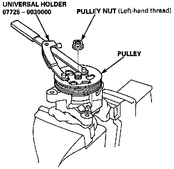 NOTE: Pulley nut has left-hand threads.