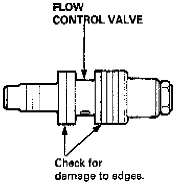 1. Check the flow control valve for wear, burrs, and other damage to the edges of the grooves in the valve.