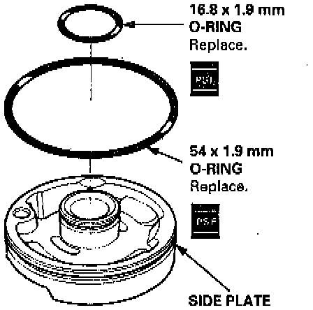 9. Remove the O-rings from the side plate.
