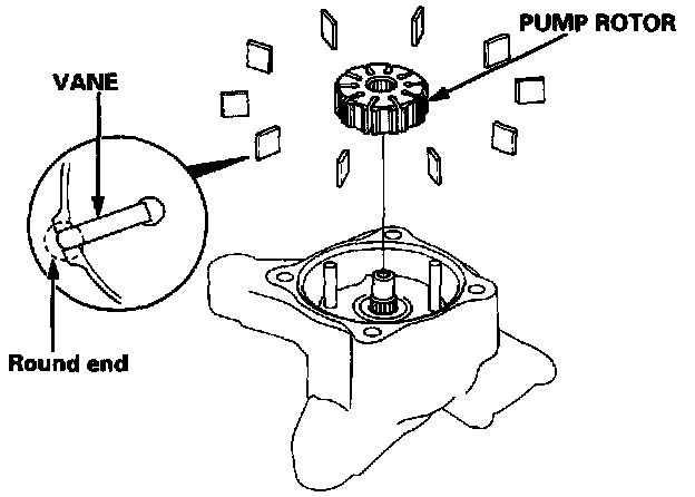 NOTE: Be sure that the round ends of the vanes are in contact with the sliding surface of the cam ring.